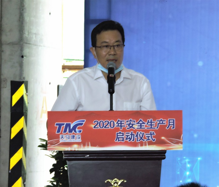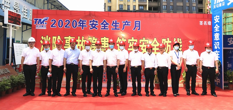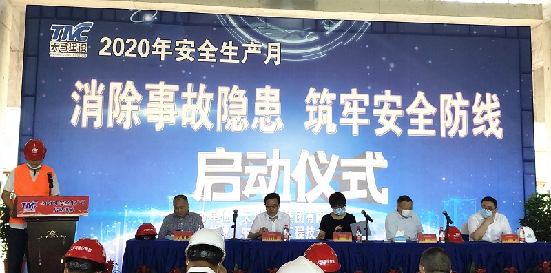 今年是第19個(gè)全國(guó)“安全生產(chǎn)月”,主題是“消除事故隱患、筑牢安全防線”。為了推進(jìn)本年度“安全生產(chǎn)月”活動(dòng)的有序開展,進(jìn)一步提升集團(tuán)安全文明施工管理水平,營(yíng)造出良好的安全生產(chǎn)氛圍,6月5日上午,武漢東湖高新住建局及天馬建設(shè)集團(tuán)2020年“安全生產(chǎn)月”啟動(dòng)儀式,在我司承建的中冶南方國(guó)際社區(qū)三期項(xiàng)目部隆重舉行。東湖高新區(qū)住建局張蓉局長(zhǎng),東湖高新區(qū)建管站站長(zhǎng)王萬連,武漢建設(shè)安全協(xié)會(huì)秘書長(zhǎng)李祥林,中冶南方安全生產(chǎn)部部長(zhǎng)司良,中冶南方(武漢)置業(yè)總經(jīng)理閆雙,天馬建設(shè)集團(tuán)總經(jīng)理高昌盛、監(jiān)事會(huì)主席張幼明、紀(jì)委書記李華彪、工會(huì)主席余勝利等及有關(guān)單位共計(jì)120余人出席了會(huì)議。