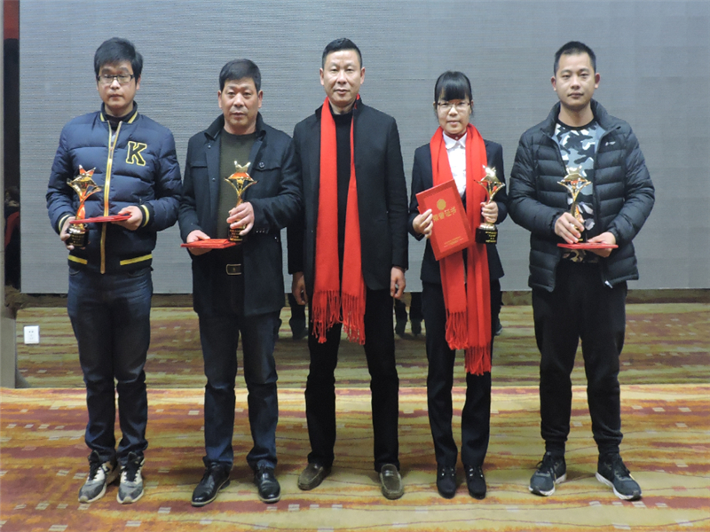 天馬建設(shè)集團“2016年度優(yōu)秀員工——天馬之星獎”:“中冶南方國際社區(qū)一期四標(biāo)段項目”項目經(jīng)理 張勇;“江騰廣場項目”技術(shù)總負責(zé)人 王詠鐵;“天馬建設(shè)集團”財務(wù)室 汪珍才;“德成國際文化創(chuàng)意軟件園一期A區(qū)工程”現(xiàn)場負責(zé)人 劉澤詠。頒獎人:集團監(jiān)事會主席張幼明。