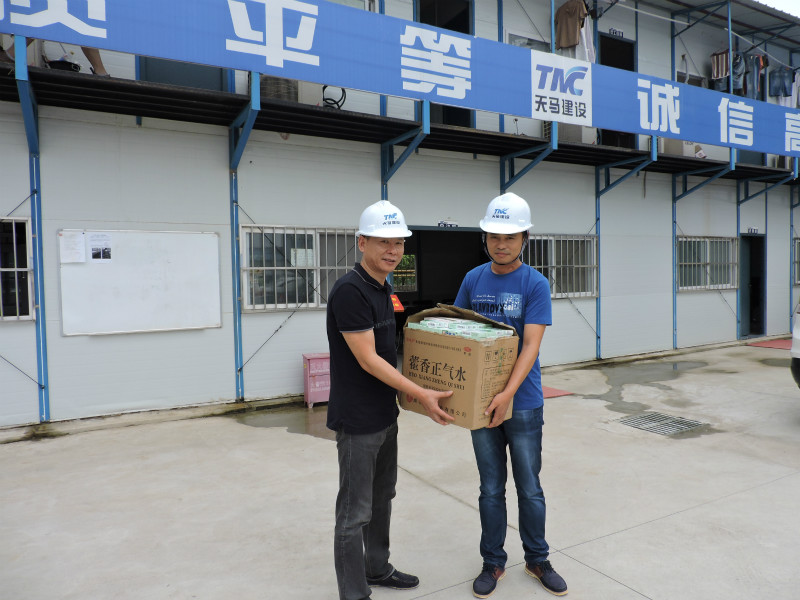 8月2日至5日,天馬建設(shè)集團(tuán)總工余勝利帶領(lǐng)辦公室、工程部、策劃部一行人,冒著高溫酷暑,對集團(tuán)各項(xiàng)目工地開展了“夏日送清涼”慰問活動(dòng),給一線工人們送去了綠豆、人丹、藿香正氣水等清涼防暑用品,讓一線工人們在酷暑中感受到了一絲舒心的涼意。