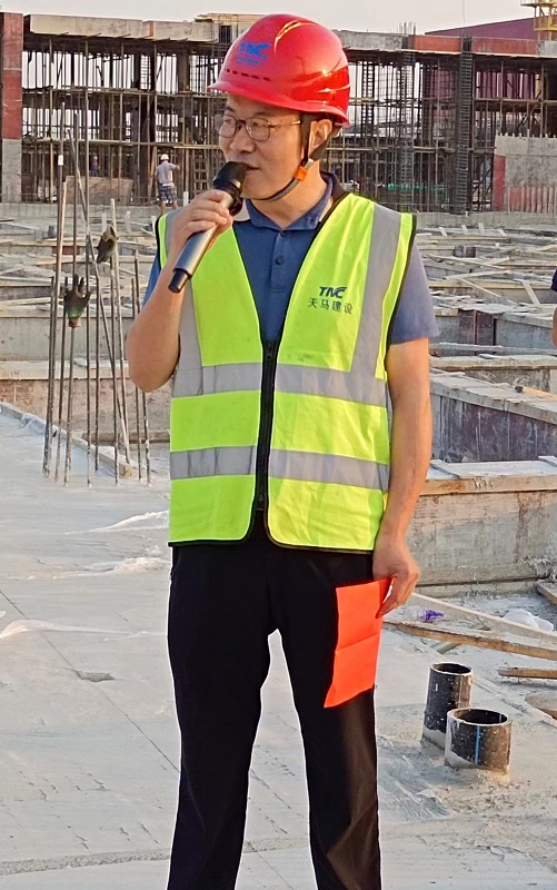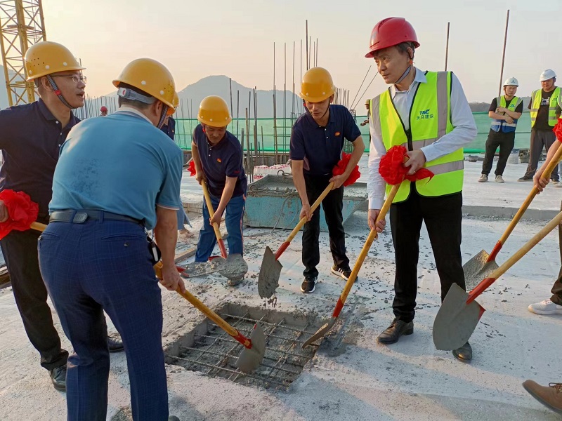 中新開維現(xiàn)代牧業(yè)項(xiàng)目位于鄂州市碧石渡鎮(zhèn)虹橋村,總投資40億元,建設(shè)兩棟26層高養(yǎng)殖大樓,總建筑面積80萬平方米,二號(hào)生產(chǎn)大樓總建筑面積約40萬平方米,總層高94.2米,待兩棟大樓全部順利投產(chǎn)后,可實(shí)現(xiàn)年出欄生豬120萬頭。該項(xiàng)目將成為中國生豬養(yǎng)殖行業(yè)勞動(dòng)效率、防疫等級(jí)、環(huán)保低碳、人均薪資最高和綜合成本最低的現(xiàn)代化生豬養(yǎng)殖牧場(chǎng)之一。項(xiàng)目自2021年8月1日開工建設(shè)以來,項(xiàng)目管理人員合理統(tǒng)籌人材機(jī),戰(zhàn)高溫、保工期、保投產(chǎn)、保交叉作業(yè)安全,做到不間斷施工,人停機(jī)械不停。生產(chǎn)大樓的1-2層為功能設(shè)施用房,3-26層為養(yǎng)殖標(biāo)準(zhǔn)層。養(yǎng)殖標(biāo)準(zhǔn)層采用大平層大單元設(shè)計(jì),實(shí)行每層一條龍生產(chǎn)模式,實(shí)現(xiàn)豬的同層流轉(zhuǎn)。高層養(yǎng)豬是一系列創(chuàng)新的集成,突破關(guān)鍵技術(shù),實(shí)現(xiàn)多項(xiàng)世界首創(chuàng),以規(guī)?;F(xiàn)代化、自動(dòng)化、智能化、環(huán)?;?、低碳化的發(fā)展理念促進(jìn)生豬養(yǎng)殖加快轉(zhuǎn)型升級(jí),以創(chuàng)新引領(lǐng)生豬產(chǎn)業(yè)高質(zhì)量發(fā)展。 在封頂儀式現(xiàn)場(chǎng),總經(jīng)理高昌盛致辭表示,今天是中華人民共和國成立73周年,在這個(gè)大喜的日子里,我們迎來了中新開維現(xiàn)代牧業(yè)二號(hào)生產(chǎn)大樓的喜封金頂,這是天馬建設(shè)集團(tuán)有限公司與湖北中新開維現(xiàn)代牧業(yè)有限公司長期合作的結(jié)晶。自項(xiàng)目建設(shè)以來,我們嚴(yán)格做到了四個(gè)確保:保質(zhì)量、保安全、保進(jìn)度、保項(xiàng)目的和諧安定,如期完成建設(shè)任務(wù)。項(xiàng)目的順利封頂,標(biāo)志著工程建設(shè)取得了階段性的勝利,也為下一步工作開創(chuàng)了良好局面,我們將繼續(xù)秉承“客戶至上、質(zhì)量第一、安全第一”的經(jīng)營理念,堅(jiān)持“逢建必優(yōu)”的建設(shè)宗旨,繼續(xù)保持與中新開維的深度合作,以一流的管理、一流的質(zhì)量、一流的信譽(yù),建設(shè)一流的工程,以回報(bào)中新開維和諸葛董事長的信任與支持。