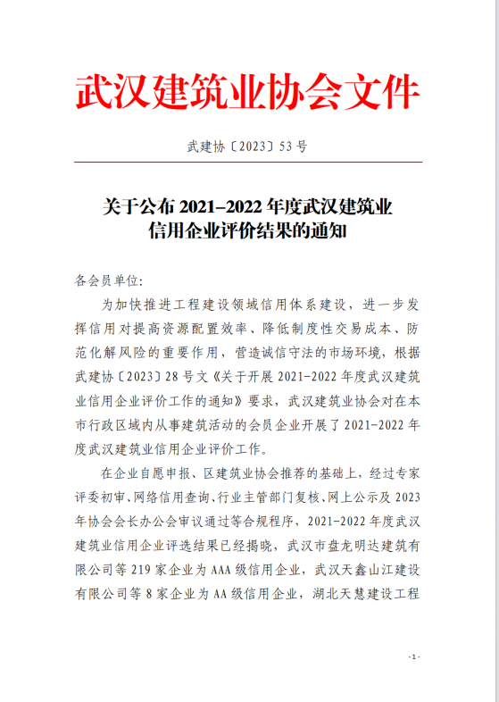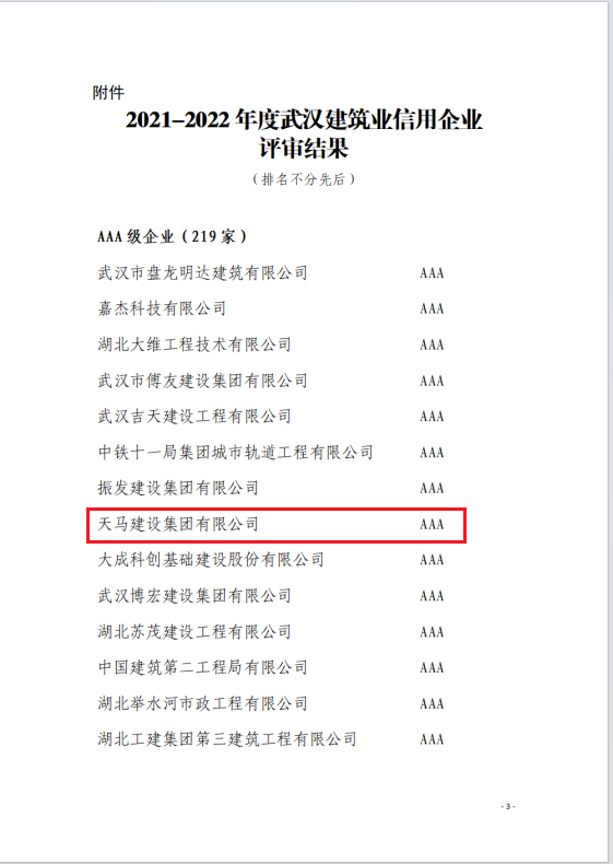 近期,天馬建設(shè)榮獲2022年度武漢市最具成長性企業(yè)和2021-2022年度武漢建筑AAA級信用企業(yè)。