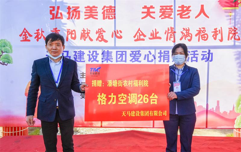 潘塘街福利院是一家公辦養(yǎng)老機(jī)構(gòu),目前供養(yǎng)了40多名三無人員、殘疾老人。為了改善福利院的生活環(huán)境,天馬建設(shè)集團(tuán)采購了26臺格力空調(diào)、20臺取暖器、40床嶄新的棉被送到福利院,讓這里的老人安心過冬,受到了全體老人的一致稱贊?!熬啪胖仃柟?jié),濃濃敬老情!我代表潘塘福利院全體老人感謝天馬集團(tuán)為我們捐贈(zèng)的空調(diào),讓我們的老人冬暖夏涼,給我們精神上帶來更大的慰藉”。面對愛心企業(yè)的善舉,福利院院長唐家菊高興不已。
